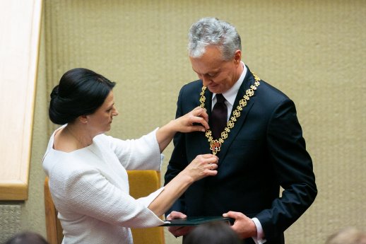 Lietuvos Respublikos Prezidento Gitano Nausėdos priesaikos priėmimo ceremonijos Seime akimirka / Ž. Gedvilos / „15min“ nuotr.