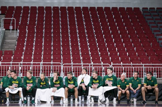 Lietuvos ir Rumunijos vyrų krepšinio rinktinių varžybų akimirka / Ž. Gedvilos / „15min“ nuotr.