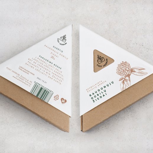 „Pagrindiniai dėžutės dizainai yra pagaminti naudojant ekologišką dvipusį rudą popierių, kurio spalva ir medžiaga puikiai atliepia aplinkai draugiškos pakuotės tikslą. Baltiems įpakavimams pasirinktas pieno baltumo spalvos popierius, kuris deri su rudos spalvos tonu“, – pakuotės specifiką atskleidžia VTDK alumnė.