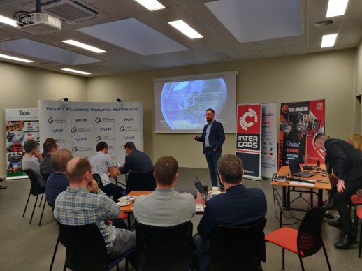 Doc. dr. Deividas Navikas mokymo priemonės „E-tool for car mechanics“ pristatymo metu / vTDK nuotr.