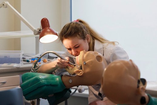 – Būsimieji gydytojai odontologai su specialybės specifika susipažįsta jau pirmame kurse, įvado į odontologijos specialybę metu. Šis kursas padeda perprasti vaikų ir suaugusiųjų dantų gydymo, protezavimo, chirurgijos ar ortodontijos skirtumus, padeda suprasti, kokia būsimosios specialybės kryptis labiausiai traukia. Antrame kurse, susipažinus su dantų protezavimo medžiagomis ir metodais, dirbama su „pirmuoju pacientu“ – tiesa, tai dirbtinis muliažas. Tad ikiklinikinio kurso metu nėra streso „sugadinti“ tikrą dantį, nes pirmiausia mokomasi gydyti ir protezuoti šio „paciento“ plastmasinius dantis.