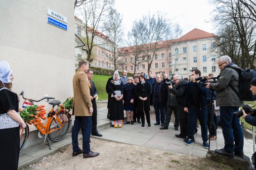Miesto vadovas pasidžiaugė, kad Nyderlandų ambasada yra viena aktyviausių ir dovanoja miestui labai daug gražių projektų: nuo 2004 m. apsodina tulpėmis Olandų žiedą, įrengė nemokamą bibliotekėlę Bernardinų sode, padovanojo miestui automobilio formos dviračių stovus, organizuoja mokymus dviračių takų projektuotojams, darnaus judumo ir bendrojo miesto planų rengėjams. Ambasadoriaus Bertas van der Lingenas sakė, jog didžiuojasi dar vienu gražiu projektu ir gatvės pavadinimu olandų kalba, kuris atidengtas būtent ant Vilniaus technologijų ir dizaino kolegijos pastato, kurios bendruomenė glaudžiai bendradarbiauja su Nyderlandų Karalystės ambasada: grafinio dizaino katedros dėstytojai ir studentai pagal Ambasados suformuluotas praktines užduotis kuria įvairius infografikos projektus.